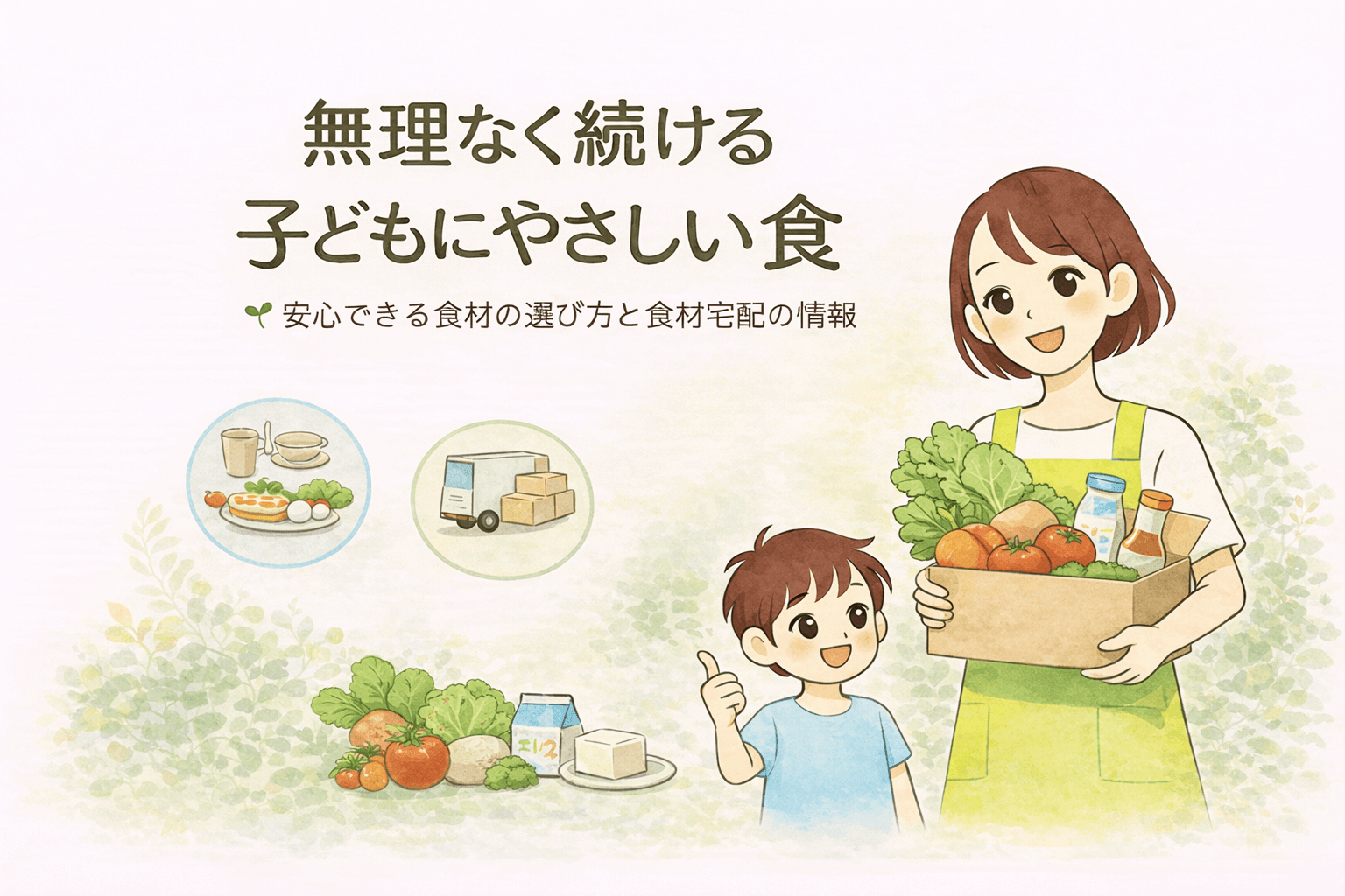 「こどもにやさしい食の選び方」や「食材宅配の情報」をまとめています。