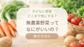 こどもにやさしい食のきほん 無農薬野菜って何がいいの?農薬野菜との違いをわかりやすく解説 無農薬野菜とは?一般的な野菜(農薬使用)との違いやメリット・デメリットをわかりやすく解説します。子どもがいる家庭でも無理なく続けられる選び方や、スーパー・宅配での見分け方も紹介しています。 2026.04.03 こどもにやさしい食のきほん