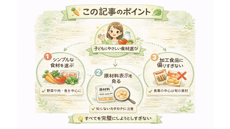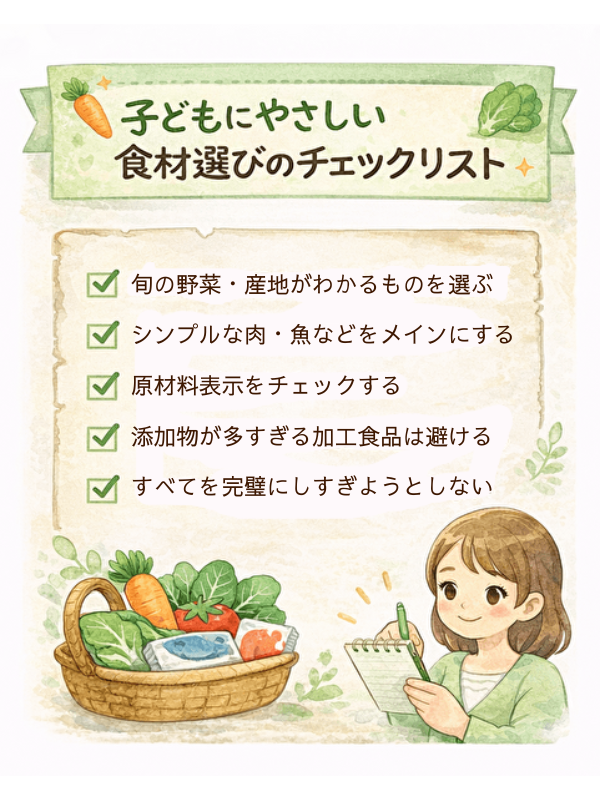 - 子どもにやさしい食材を選ぶための基本的な考え方