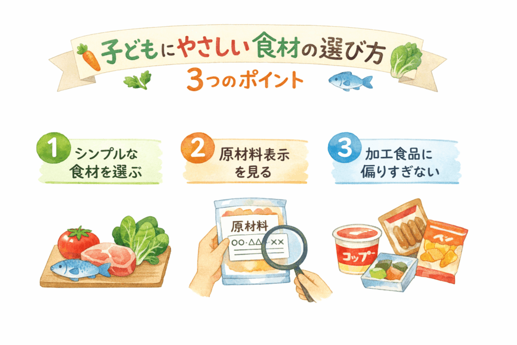 【子どもにやさしい食材の選び方】ポイントは次の3つです。